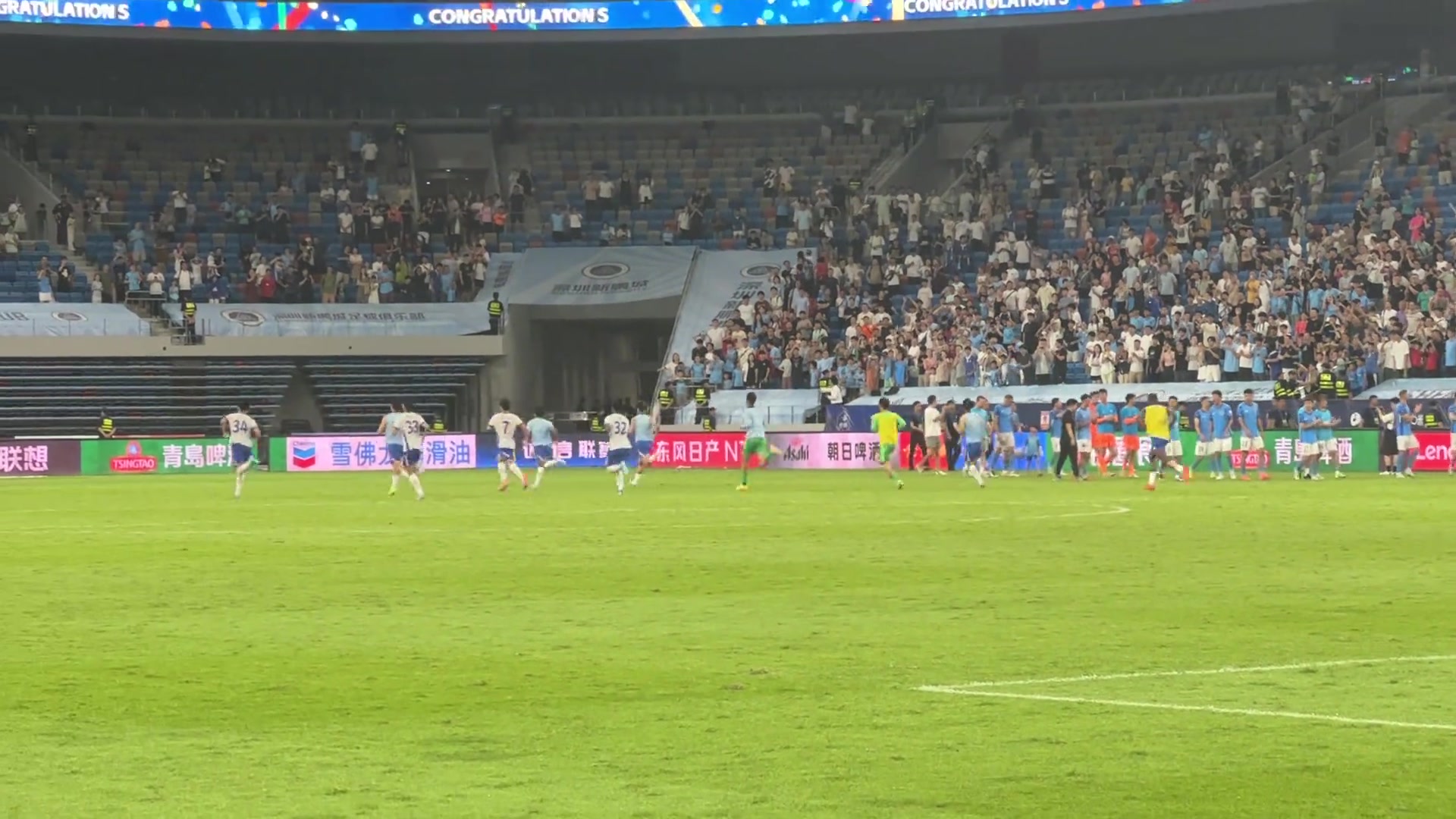 胜败两重天深圳新鹏城球员赛后热情庆祝申花替补球员默默加练